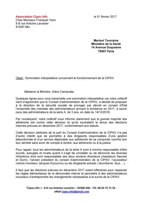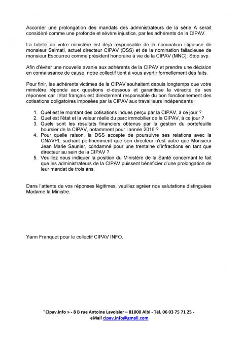 Mise à jour - : Courrier envoyé par Cipav.info au Ministère de la Santé: