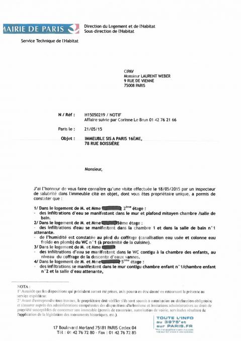 A l'analyse, il apparaît pourtant clairement que le parc immobilier de la CIPAV doit être remis aux normes depuis des années et que rien n'est fait malgré des injonctions formelles à la CIPAV ou son prestataire, le crédit agricole immobilier. Les locataires ont déposés de nombreuses plaintes et d'autres vont apparaîtres car le problème ne fait que s'aggraver !!! On parle clairement de mise en danger de la vie d'autrui, de problémes de plomberie déffectueuse, de peintures au plomb, de batiments amiantés, d'électricité obsoléte, et j'en passe. Les faits sont tellement graves que la Mairie de Paris a saisi le procureur de la république.